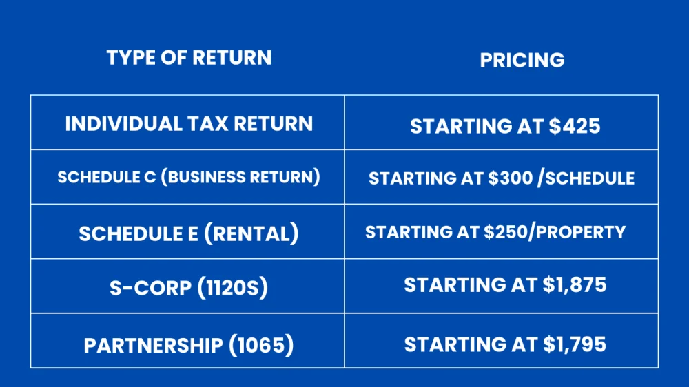 We also offer tax preparation services for individuals and other businesses after a pre-qualification.